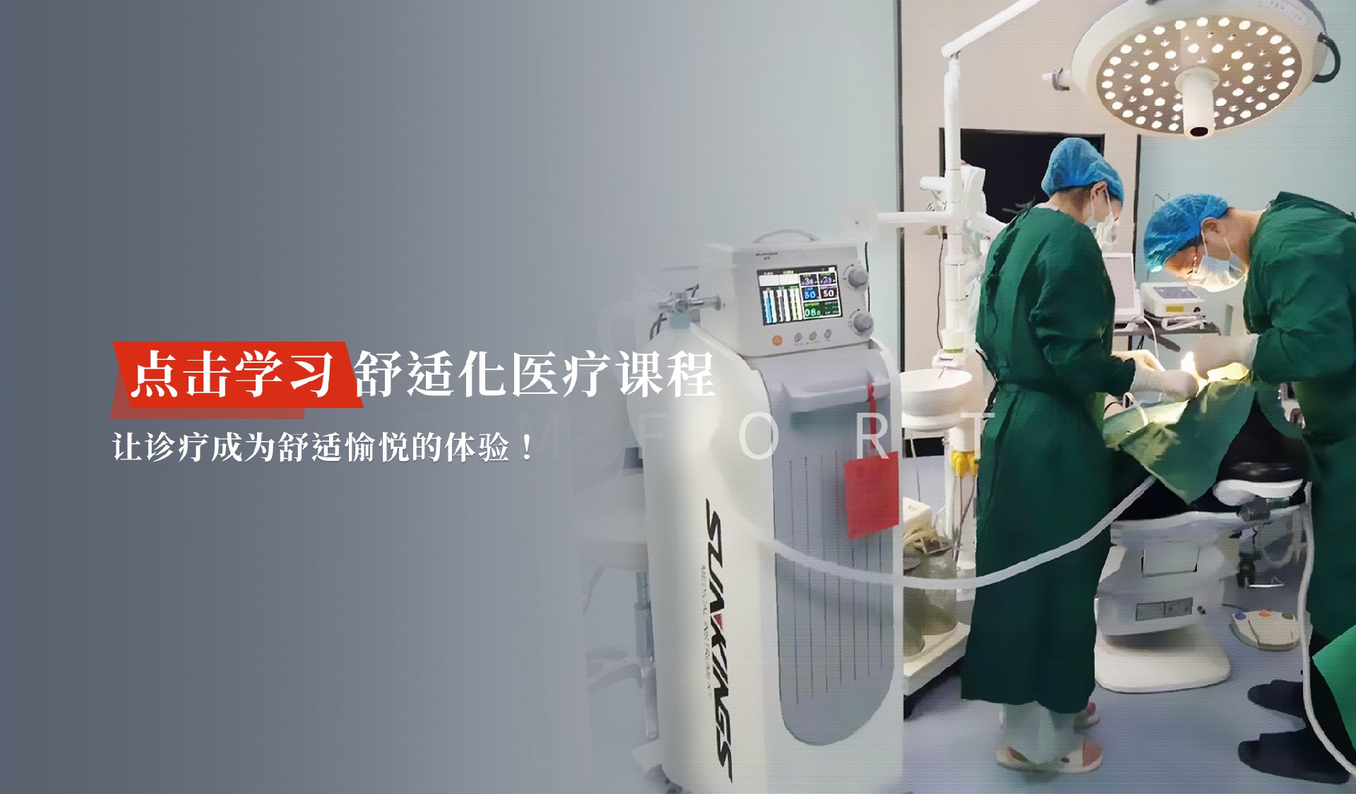 舒適醫(yī)療是讓患者在沒有痛苦和恐懼的環(huán)境下就診、檢查及治療,使就醫(yī)成為一個愉快和舒適的過程